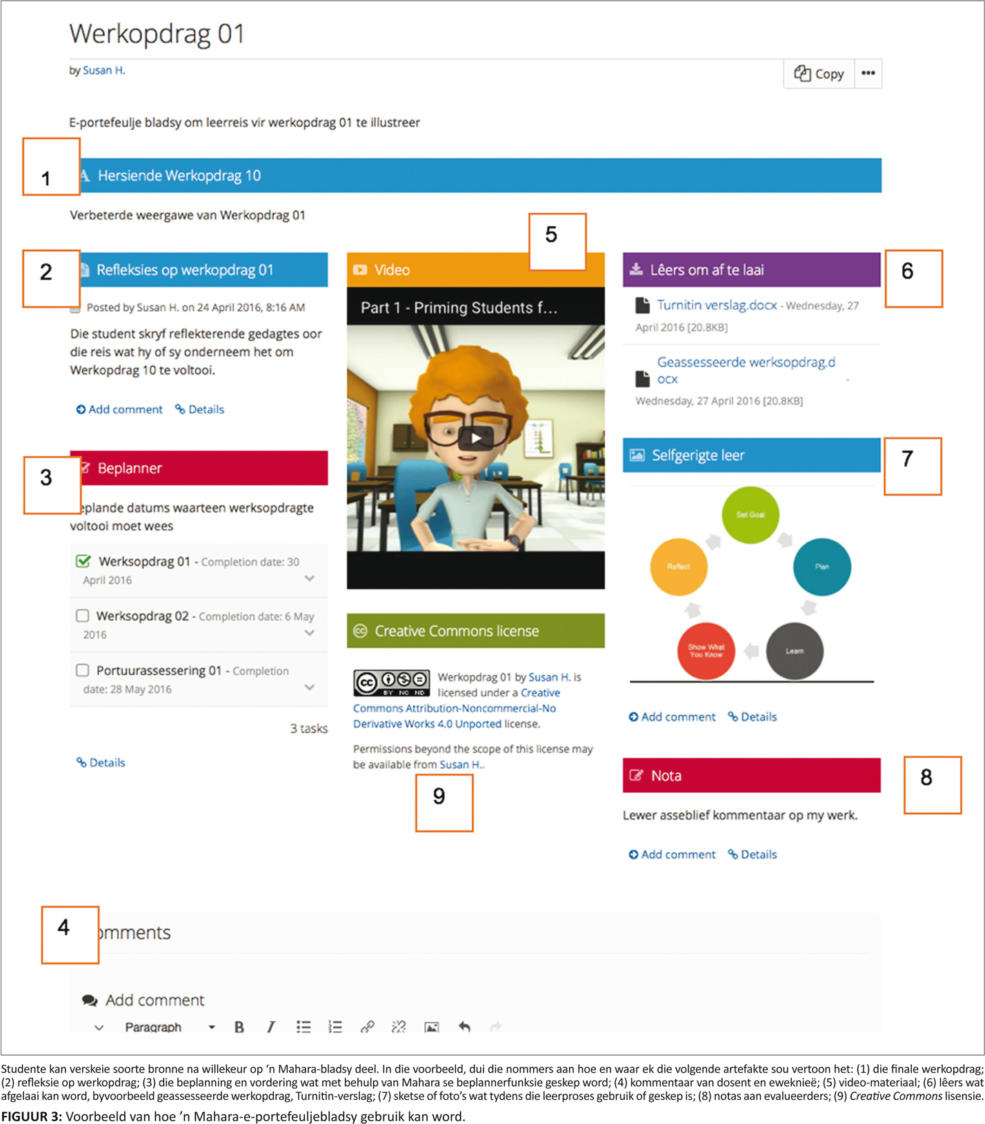 FIGUUR 3: Voorbeeld van hoe ’n Mahara-e-portefeuljebladsy gebruik kan word. |