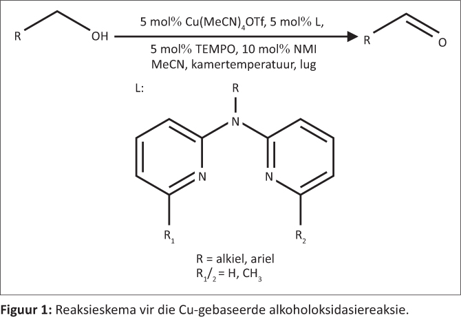 Die studie behels die ontwikkeling van ’n Cu(I)/Bis(piridiel)-N-alkiel-amien/TEMPO/NMI-katalisatorsisteem (Figuur 1) vir kopergekataliseerde, aërobiese alkoholoksidasiereaksies. Verskillende reaksieparameters is gevarieer binne die katalisatorsisteem om sodoende die kinetiese gedrag van die sisteem te evalueer. Verder is ’n verskeidenheid van primêre en sekondêre alifatiese en aromatiese alkohole gebruik om sodoende die omvang van substrate vir die katalisatorsisteem te toets. Die geïsoleerde karbonielprodukte is gekarakteriseer deur gebruik te maak van ’n verskeidenheid analitiese tegnieke wat GC, KMR en IR insluit.