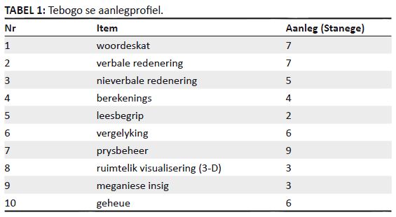 • ’n Breë begrip van die veelvoudige faktore wat prestasie en sukses in die lewe beïnvloed.