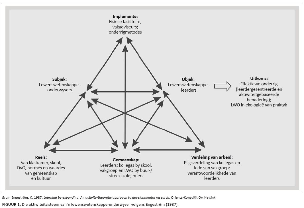 Die aktiwiteitsisteem van ʼn lewenswetenskappe-onderwyser (LWO), volgens die model van Engeström (1987), word in Figuur 1 voorgestel.