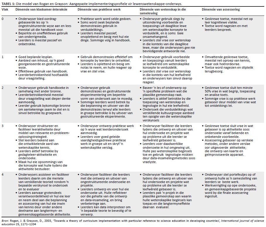 Die model van Rogan en Grayson: Aangepaste implementeringsprofiele vir lewenswetenskappe-onderwys.