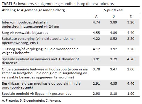 TABEL 6: Inwoners se algemene gesondheidsorg diensvoorkeure.