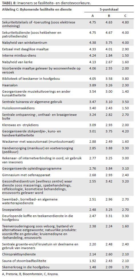 TABEL 8: Inwoners se fasiliteite- en dienstevoorkeure.
