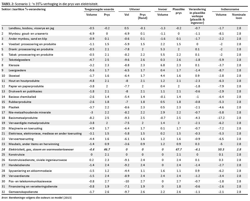 TABLE 2: Scenario 1: ’n 35%-verhoging in die prys van elektrisiteit.