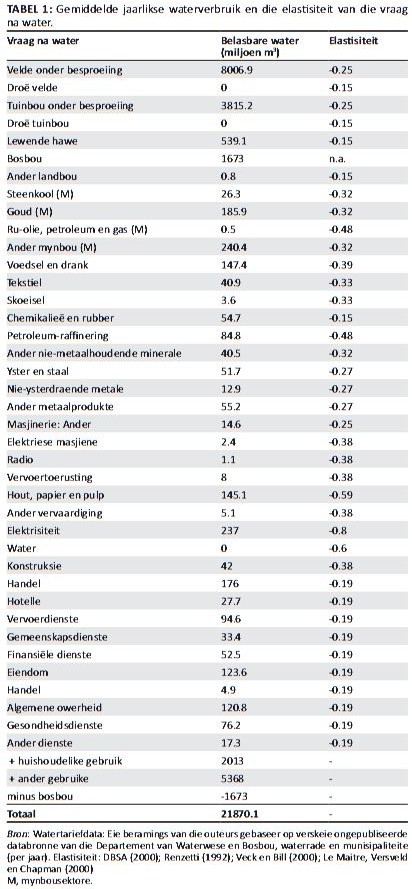TABEL 1: Gemiddelde jaarlikse waterverbruik en die elastisiteit van die vraag na water.