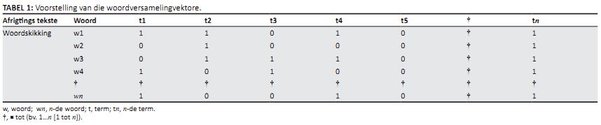 TABEL 1: Voorstelling van die woordversamelingvektore.
