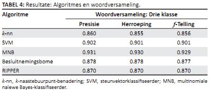 TABEL 4: Resultate: Algoritmes en woordversameling.