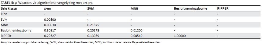 TABEL 5: p-Waardes vir algoritmiese vergelyking met art.py.