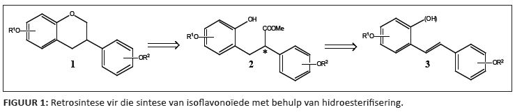 FIGUUR 1: Retrosintese vir die sintese van isoflavonoïede met behulp van hidroesterifisering.
