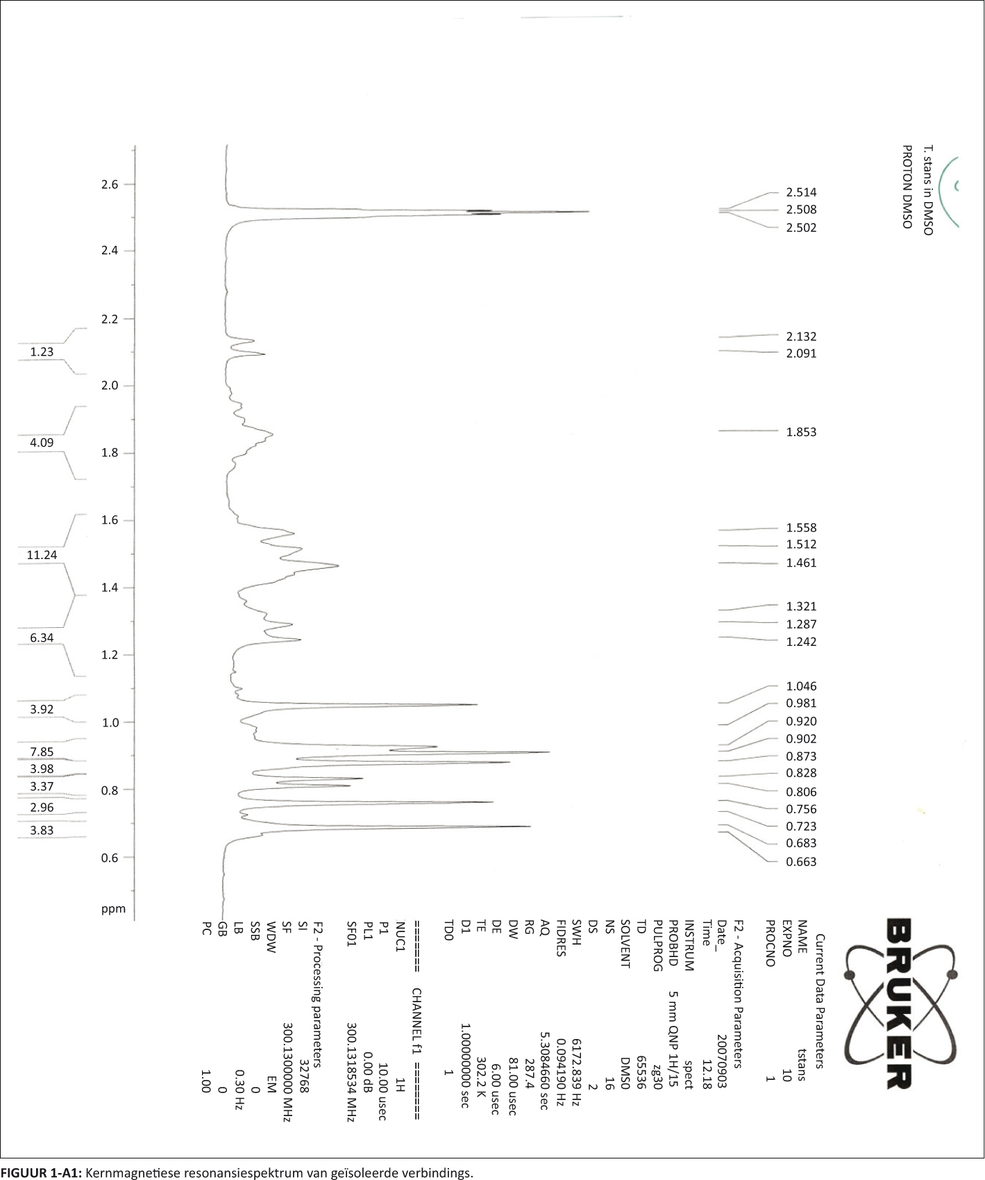 FIGUUR 1-A1: Kernmagnetiese resonansiespektrum van geïsoleerde verbindings. |