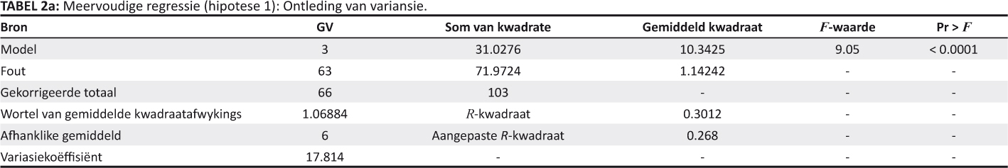 | TABEL 2a: Meervoudige regressie (hipotese 1): Ontleding van variansie. |