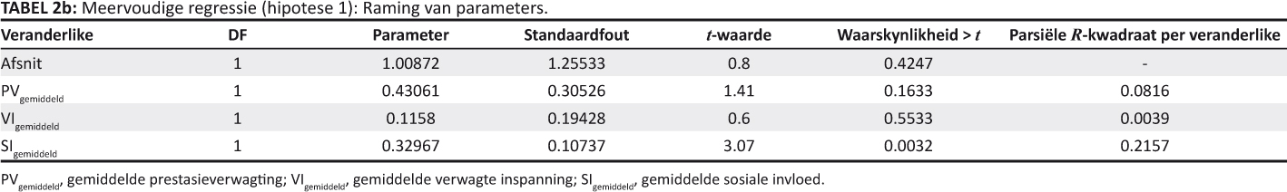 | TABEL 2b: Meervoudige regressie (hipotese 1): Raming van parameters. |
