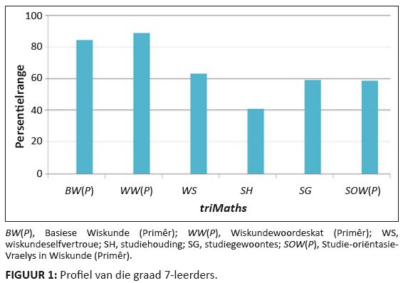 Wanneer wiskunde-onderwysers toepaslike vraelyste in hul wiskundeklas gebruik, kan hulle leerders se strategieë en tegnieke, asook hul sterk en swak punte rakende die konatiewe, psigomotoriese en affektiewe areas daardeur identifiseer. Gevolglik kan ’n toepaslike intervensie tydig beplan en geïmplementeer word (Maree 2010). Deur die toepassing van triMATHS en die stelselmatige ontleding en interpretasie van die data wat ingesamel is, is dit moontlik om potensiële probleme te identifiseer wat deur ’n bepaalde leerder of ’n groep leerders ondervind kan word. Tipiese probleme is, onder meer, dié met basiese konsepte in of die verstaan van wiskunde, ’n beperkte tegniese woordeskat in wiskunde, of gebrekkige studie-oriëntasie (d.w.s. swak wiskundeselfvertroue [WS], studiehouding [SH] of studiegewoontes [SG] in wiskunde) (Maree, Van der Walt & Ellis 2010; Van der Walt, Maree & Ellis 2010a; 2010b). Wiskunde-onderwysers is volgens Maree (1997) moontlik nie tydens hul voordiens- of indiensopleiding aan beskikbare en toepaslike vraelyste en toetse bekend gestel, of geleer hoe om hulle te gebruik, te ontleed en te interpreteer nie. Dit is ook van kardinale belang dat ’n onderwyser oor die nodige kennis moet beskik om data wat deur die invul van sodanige vraelyste ingesamel is, professioneel, kundig, doeltreffend en met omsigtigheid te ontleed en te interpreteer. Die tellings van enkele vraelyste kan nooit as absoluut beskou of in isolasie geïnterpreteer word nie (Maree, Van der Walt & Ellis 2009) – inligting moet altyd in die konteks van die leerder se totale funksionering oorweeg word (Maree 2010). Die outeur meen verder dat onderwysers die resultate van toetse te dikwels onwetenskaplik interpreteer, eerder as om ’n holistiese benadering te volg en ruimte te laat vir die persoonlikhede van en die verskeidenheid idiosinkratiese kontekste waarin leerders hulle soms bevind. ’n Toepaslike intervensie moet tydig beplan word en die sukses of mislukking daarvan behoort bepaal te kan word (Maree 2010). Die doel van die studie word vervolgens verduidelik en die navorsingsontwerp word bespreek, waarna die resultate weergegee en ontleed word ten einde die groep graad 7-leerders se sterk en swak punte te identifiseer. Die groep se gemiddelde prestasie word met dié van die normgroep (die respondente tydens die standaardisering van triMATHS) vergelyk, en teen die agtergrond van die wiskunde-onderwyser se insette word dan gepoog om die groep se sterk en swak punte beter te verstaan. Laastens word twee ewekansig gekose leerders se individuele profiele weergegee en geïnterpreteer aan die hand van die agtergrondinligting wat die onderwyser tydens die onderhoud gegee het. Die bevindings word kortliks bespreek en enkele aanbevelings gemaak. Die outeur reflekteer laastens oor die maatskaplike verantwoordbaarheid van die studie.