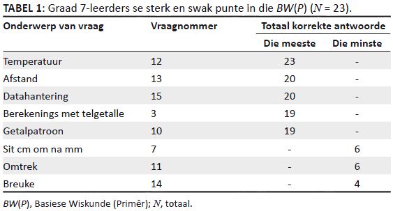 Graad 7-leerders se sterk en swak punte ten opsigte van
