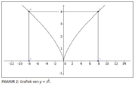 vergelyking x2 = 4 deurdat hulle die lyn y = 4 geskets het en loodlyne vanaf die snypunte op die grafiek na die x-as getrek het. My beweegrede met die gebruik van ’n grafiese voorstelling was om te poog om ’n nuwe konsepbeeld vir die oplos van kwadratiese vergelykings by studente en onderwysers te vestig en dus om die ontwikkeling van konseptuele kennis te stimuleer. Ek het die studente en onderwysers probeer aanmoedig om betekenis aan die oplos van kwadratiese vergelykings gee en dat dit nie net bloot moet gaan oor die begriplose toepassing van algoritmes en/of prosedures nie. Vanuit hierdie eksperimentele benadering het ek aan die hand van deduktiewe redenering die studente en onderwysers gelei om die wortels van x2 = 4 deur middel van faktorisering te bepaal (Pólya 1945:vii). Hierdie aktiwiteite is ontwikkelingsaktiwiteite waardeur foutiewe konsepte nuut gekonstrueer kan word. Dit wou voorkom asof ’n nuwe konsepbeeld by die meerderheid studente en/of onderwysers vir die oplossing van kwadratiese vergelykings gekonstrueer is. Almal het tot die slotsom gekom dat ’n kwadratiese vergelyking twee oplossings (wat dieselfde kan wees) het, of geen oplossing nie. Sonder enige verdere vaslegging van die konsep is die volgende bewering (as probleemoplossingsaktiwiteit) in die vraelys bespreek. Ek was eintlik moedswillig met hierdie probleem, omdat ek hul denke wou uitdaag. Die doel van ’n probleemoplossingsaktiwiteit is juis om studente te dwing om uit hul gemaksone te beweeg.Bewering 2: As x⅔= 4, dan is x = 8 die enigste oplossing Die meerderheid studente en onderwysers het x = 8 in die vergelyking ingestel en die antwoord ‘4’ verkry. Die res het die antwoord geraai.