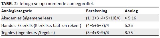assessering en terugvoer. Data is ingesamel met behulp van die Myers-Briggs Type Indicator, die Differential Aptitude