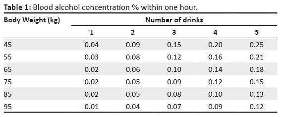 Read the following article about drinking and driving.Every year, thousands of people are killed in car accidents. Hundreds of thousands more are injured. As many as 50% of car accidents are caused by drunk drivers. The Arrive Alive campaign aims to crack down on drunk driving. Across the country, drunk driving is a very serious crime. There are laws governing how much a person may drink and still be considered safe to drive. Anyone who has a blood alcohol level of 0.05% or higher will be considered drunk and not fit to drive. Persons caught driving drunk can lose their licenses, receive a fine and a possible jail sentence. It is important for those individuals who choose to drink to understand what their blood alcohol level is. The higher the level, the more impaired a person’s abilities are. A can of beer, a glass of wine or one shot of hard liquor all contain the same amount of alcohol. Each of these should be counted as one drink. How much an alcoholic drink affects someone depends on the person’s weight. So, the effect of a glass of wine is much more pronounced in a slight person than in someone heavy. Once a person stops drinking, the blood alcohol drops about 1.5% per hour. For example: a 64 kg person with a blood alcohol level of 0.10 % would have a blood alcohol level of 0.085% after one hour and 0.070% after another hour. While a person can legally drive at blood alcohol levels of 0.04%, experts warn that impairment is still possible. To be safe, the best policy is never to drink and drive. If one does drink, however, one should at least have a ‘designated driver’. This is a person who accompanies other people, but chooses to abstain. At the end of the evening, the designated driver takes everyone home safely. Other ways for drinkers to be safe is to call a taxi or stay overnight at the place where they are drinking. These alternatives seem inconvenient, but being involved in an accident or going to jail is even worse!