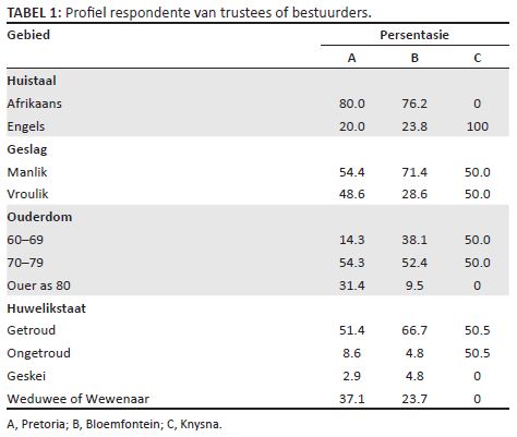TABEL 1: Profiel respondente van trustees of bestuurders.