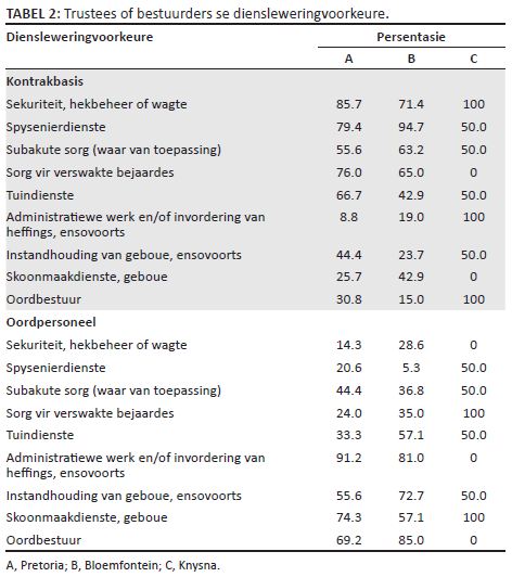 TABEL 2: Trustees of bestuurders se diensleweringvoorkeure.
