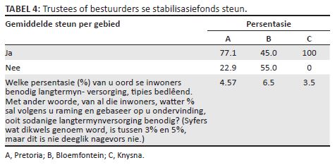 TABEL 4: Trustees of bestuurders se stabilisasiefonds steun.