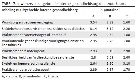 TABEL 7: Inwoners se uitgebreide interne gesondheidsorg diensvoorkeure.