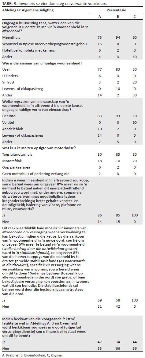 TABEL 9: Inwoners se eiendomsreg en verwante voorkeure.