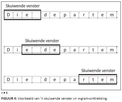 FIGUUR 4: Voorbeeld van ’n skuiwende venster vir n-gram-onttrekking.