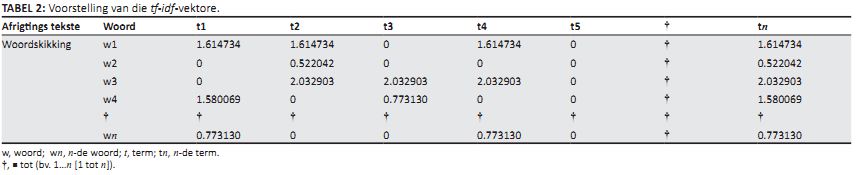 TABEL 2: Voorstelling van die tf-idf-vektore.