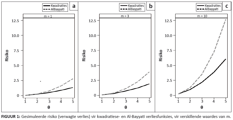 FIGURE 1: Gesimuleerde risiko (verwagte verlies) vir kwadratiese- en Al-Bayyati verliesfunksies, vir verskillende waardes van m.